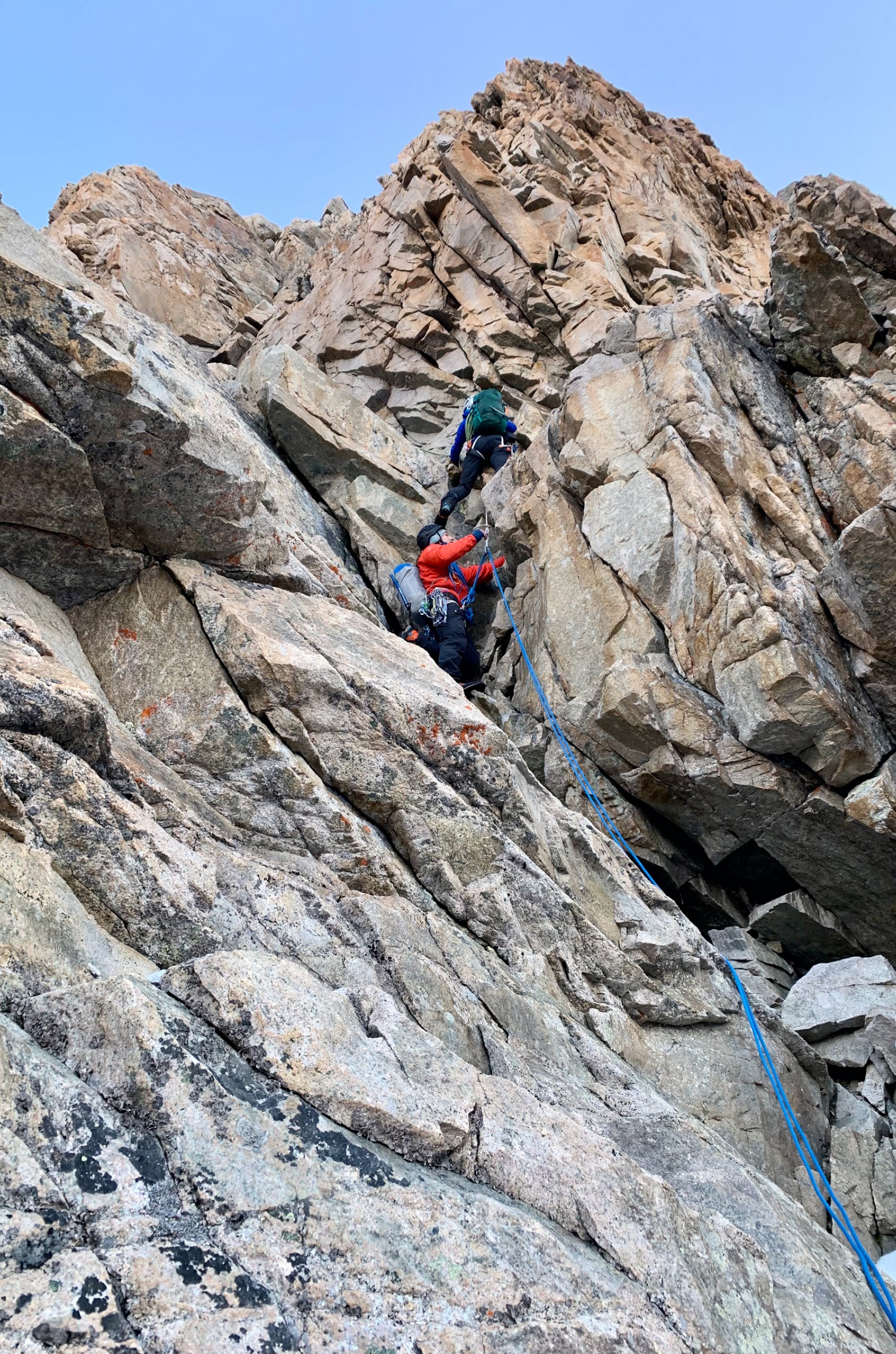 4h50. Dans le noir, le vide ne me fait pas peur. La nuit estompe la conscience de l’abîme. Dans le noir, j’oublie aussi le creux qui ronge mon estomac après un petit déjeuner sucré et frugal. Heureusement, l’escalade commence juste derrière le refuge, on n’a pas le temps de rêvasser à des oeufs brouillés à la truffe ou des saucissons imaginaires.