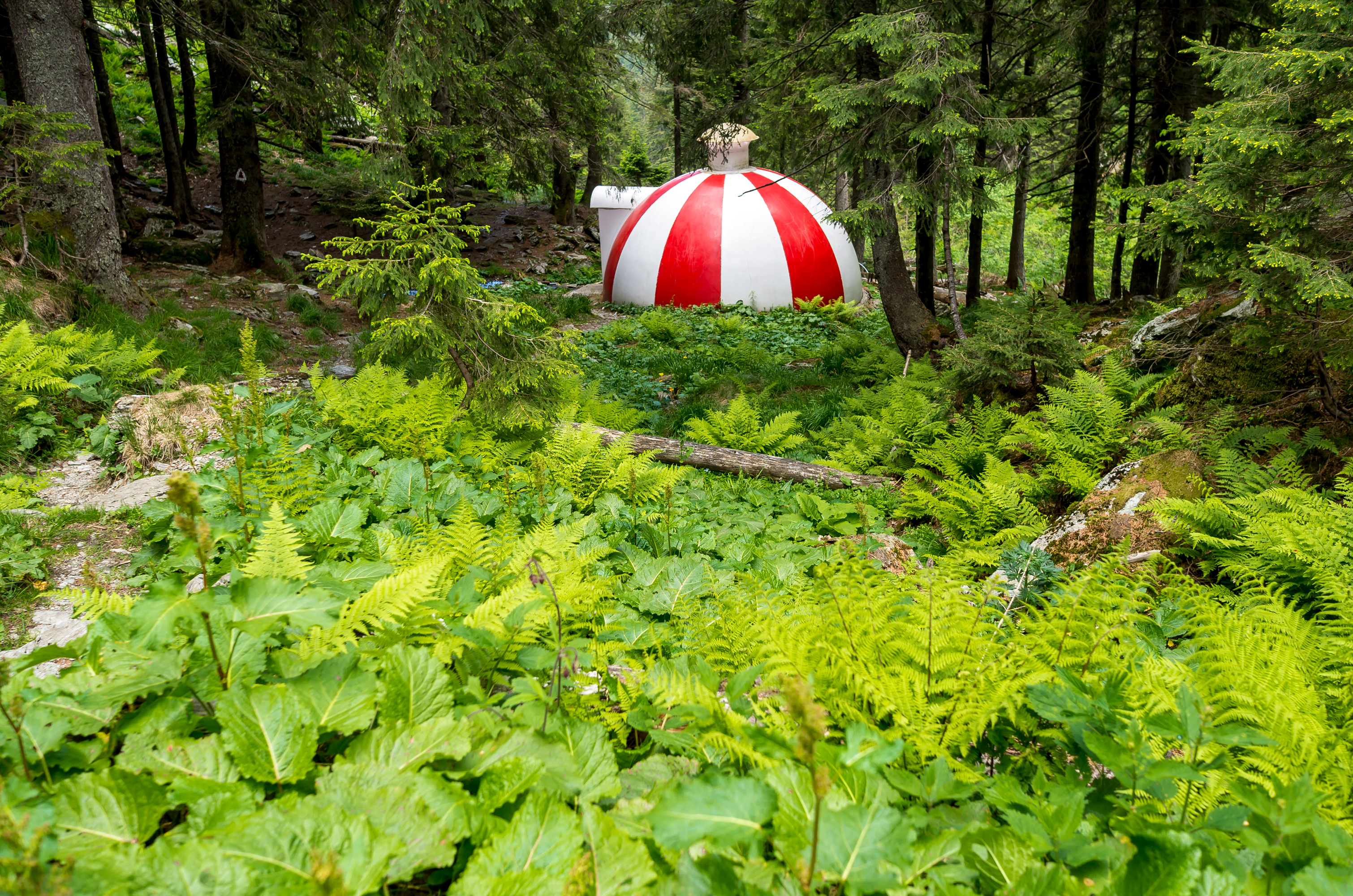 Réveil à 5h du matin. Après deux thés noirs, nous sautons dans la voiture et prenons le chemin poussiéreux qui remonte au sud de la petite ville de Victoria, au-delà du combinat chimique Viromet. Le chemin s'enfonce petit à petit dans la forêt, de plus en plus sinueux et raviné. C'est quand la voiture de George n'est plus capable de franchir les ornières que nous sortons nos bâtons et sacs à dos et que nous commençons à marcher. Le chemin forestier longe le cours de la rivière Viștea Mare pour quelques kilomètres. Sans s'en aperçevoir, le chemin devient sentier et le sentier devient un tracé étroit envahi de grandes bardanes (Arctium lappa) et fougères qui montent jusqu'à l'épaule. C'est le moment où je me pose la question comment George a pu avoir l'idée de venir en shorts plutôt qu'en pantalon... Nous poursuivrons à un bon rythme parmi les pins et les sapins qui nous guideront jusqu'au refuge d'Izvorul Viștei, où nous ferons notre première pause.