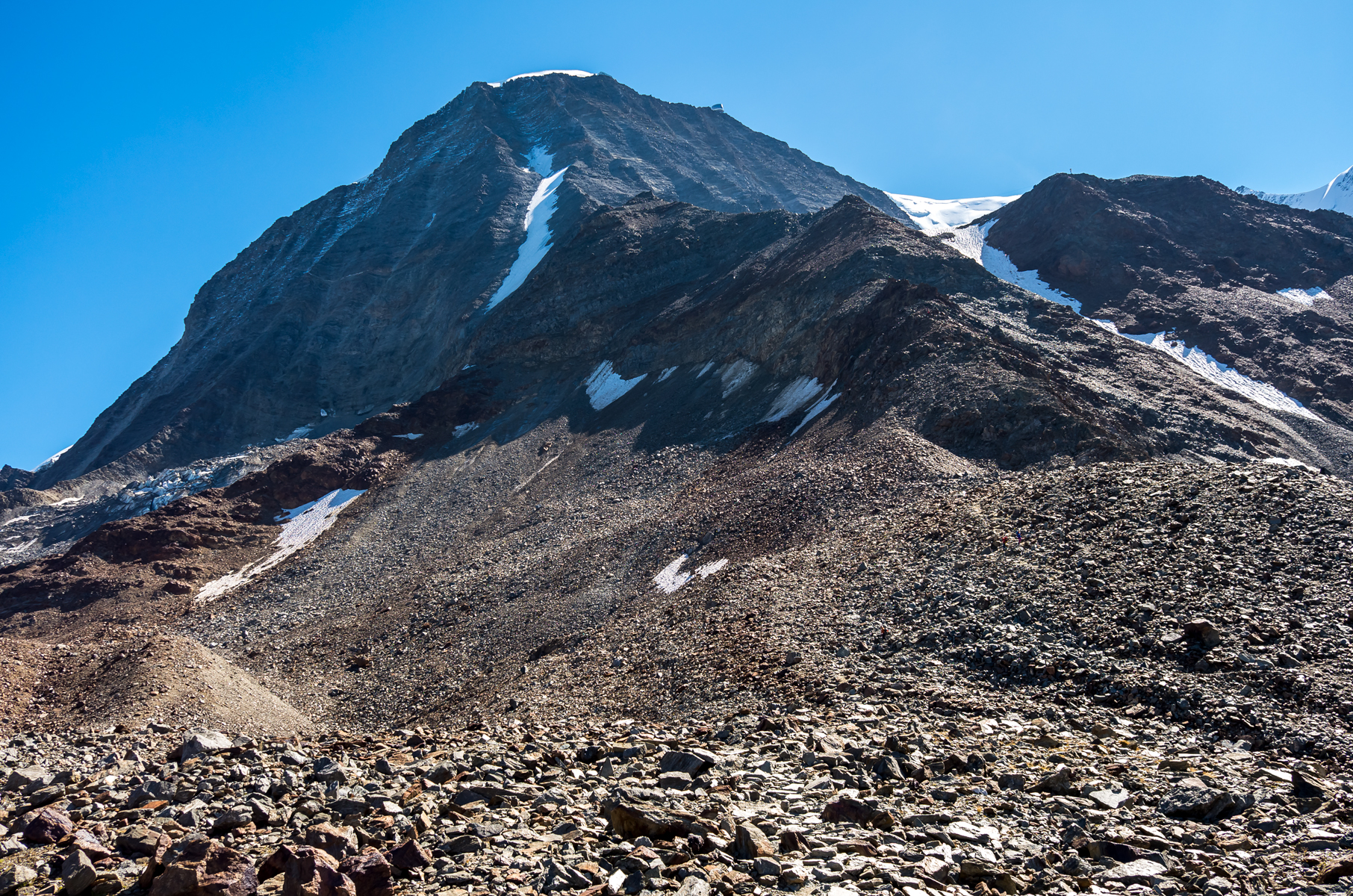 La dernière montée vers le Mont-Blanc passe à côté d’un autre sommet, le Mont Blanc de Courmayeur, 4748 m.
