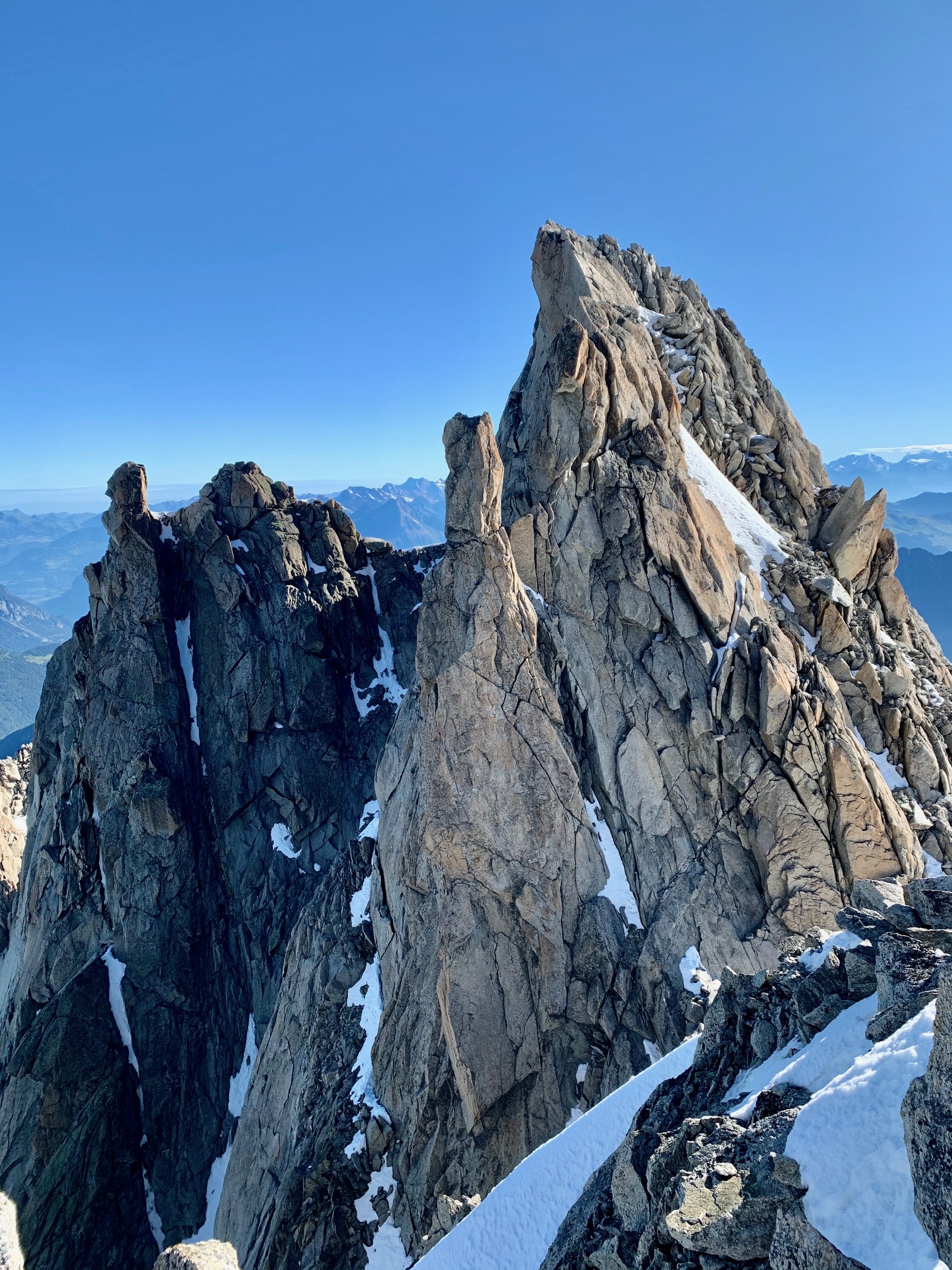 Sans se trouver parmi les 4000 des Alpes, les Aiguilles du Tour sont tout de même spectaculaires et sont une excellente opportunité de remise en jambe après une longue pause. C’est sans doute un endroit où nous retournerons, pour une nouvelle escapade où l’on mesurera le temps en longueurs de corde et points de relais, suspendus sur les parois du Clocher du Portalet.